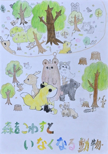 本村小学校 5年生 田中さん 「森をこわすといなくなる動物」 (Jpeg 114.6 KB)