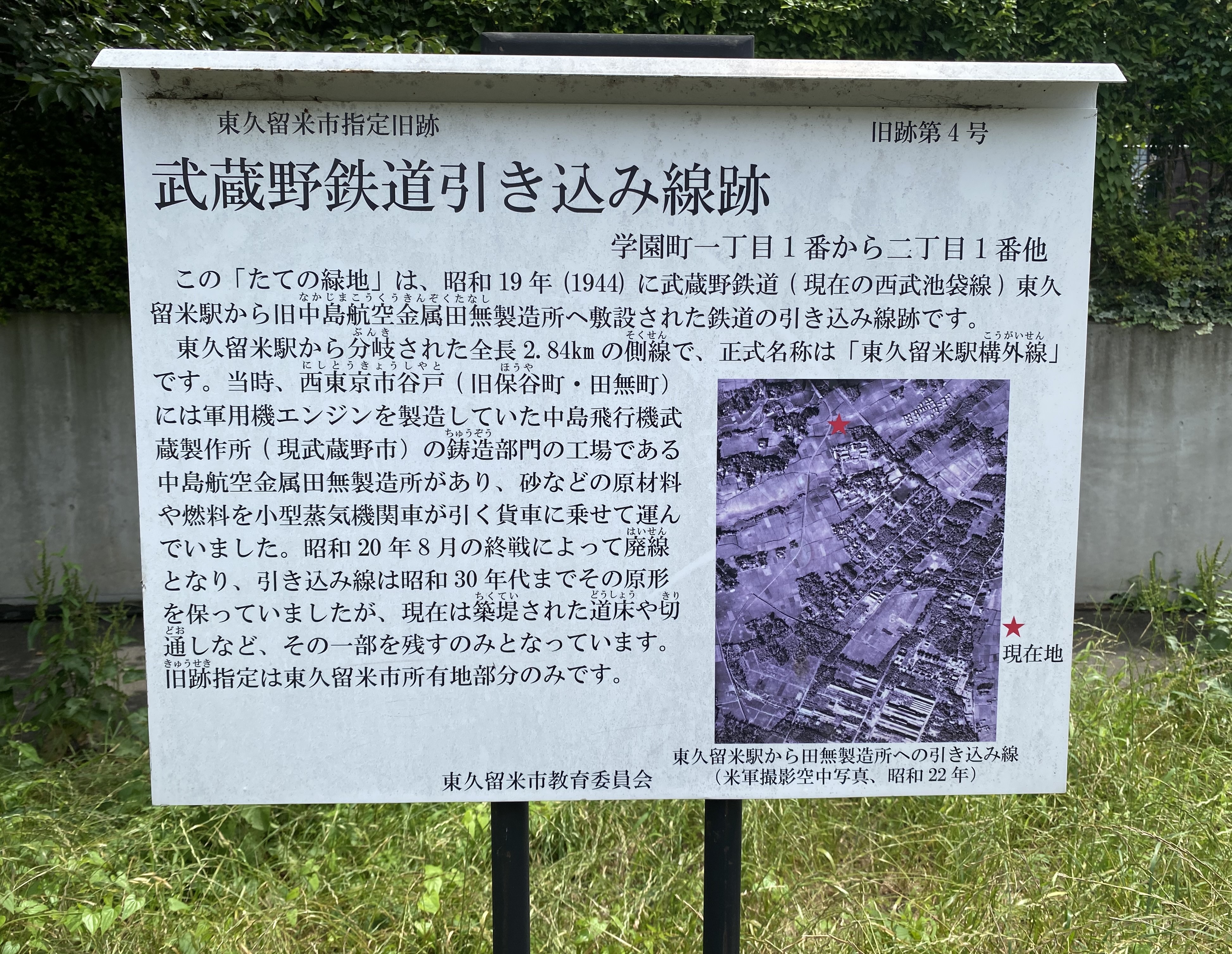 旧跡説明の看板(武蔵野鉄道引き込み線跡) (Jpeg 3.1 MB)